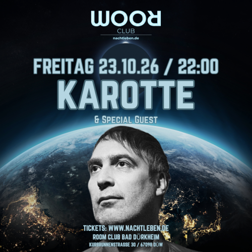 Und noch ein Kracher zum Season Opening im ROOM, KAROTTE schaut mal wieder im Room Bad Dürkheim vorbei und es folgen noch weitere Top DJs 2026/27 also schaut vorbei was das Jahr so bringt bei uns. Supported wird Karotte von einem Special Guest der erst später bekanntgegeben wird.
